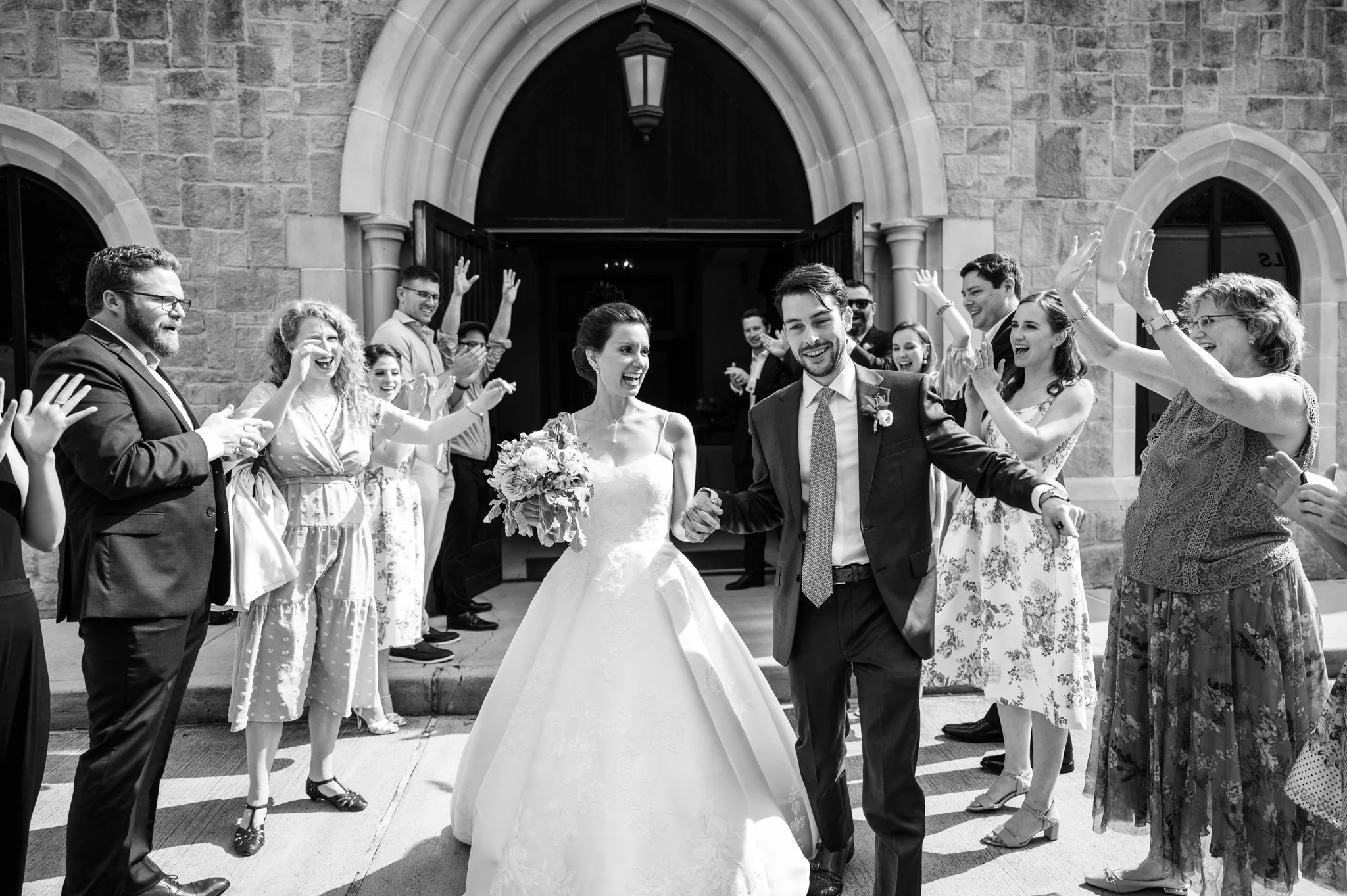 Houston Wedding photography by David Baker Studios capturing bride & groom walking down the aisle in a church